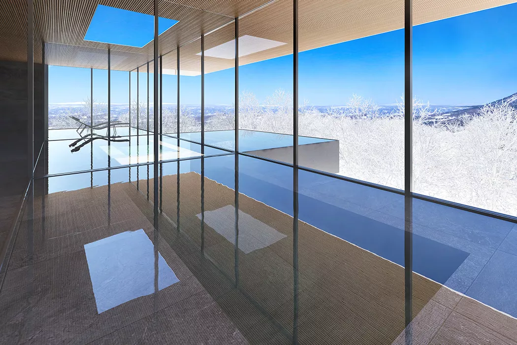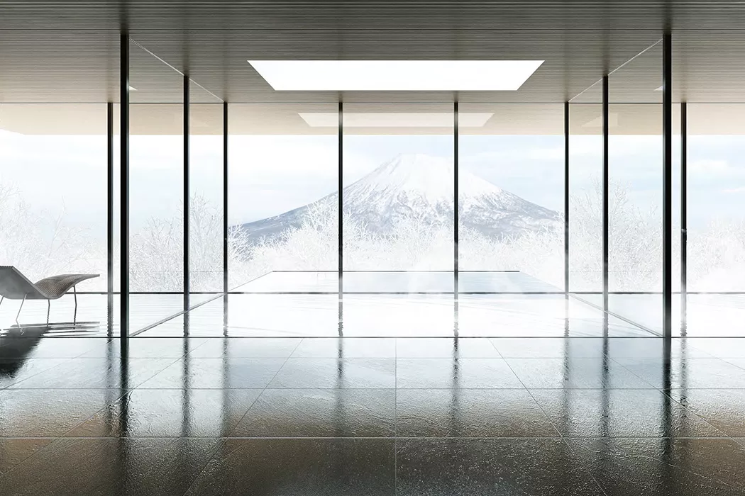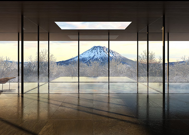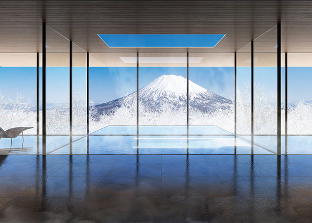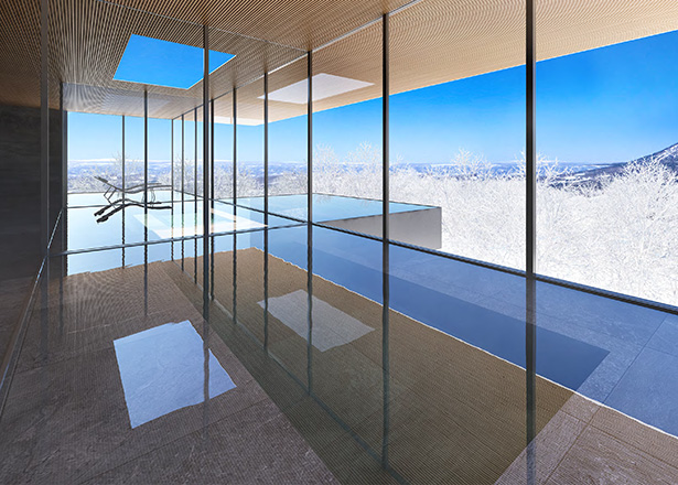 そこには意識的な境界はない。 北海道ニセコに計画している会員制ヴィラのクラブハウス内に設えたパブリックバスをもとにコンセプトデザインを実施。