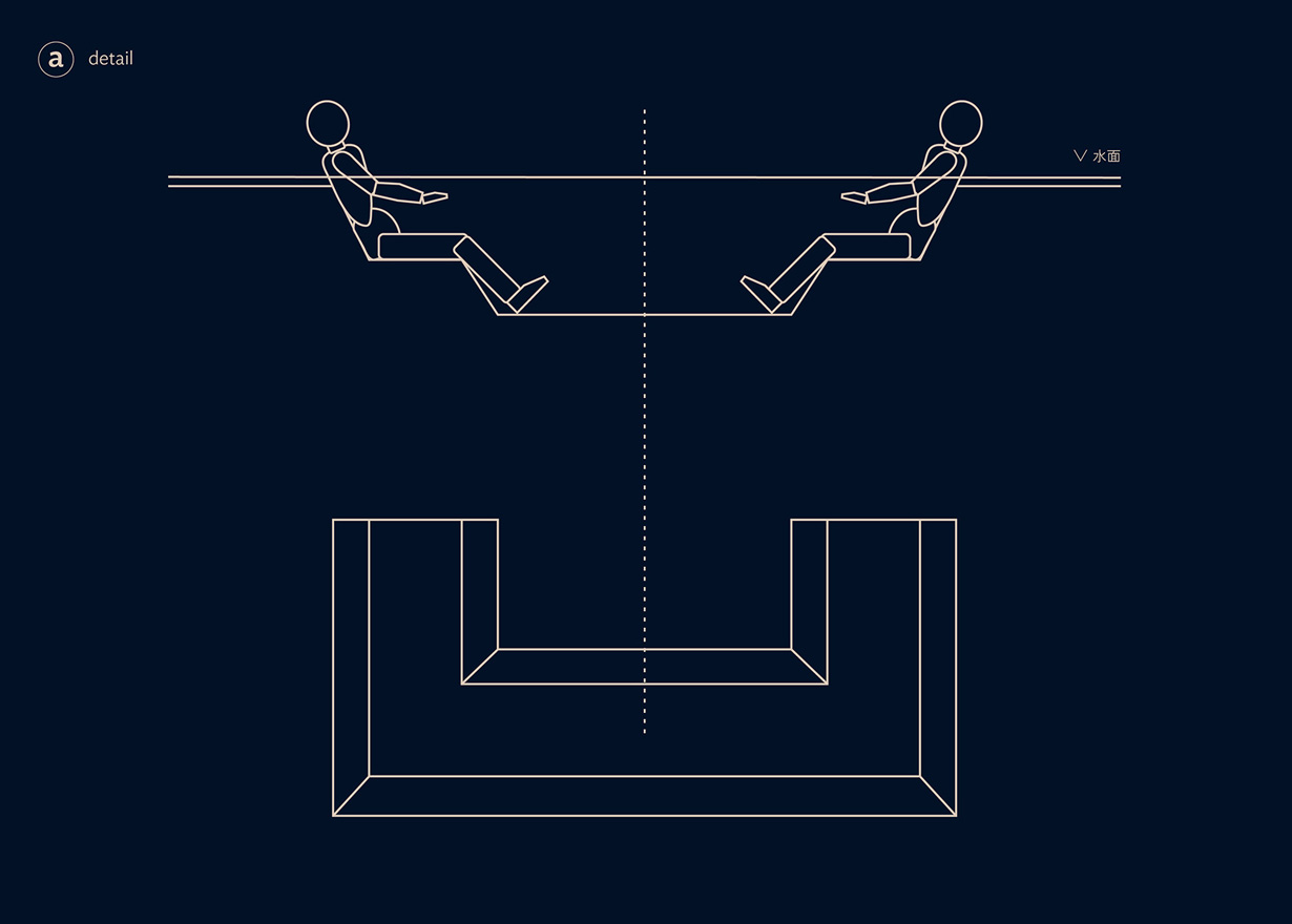 バスタブを中心に、XYZの3軸方向の空間が広がっているイメージです。両側はミストサウナやドライサウナなどのサーマルスプリングのようなアクティビティがあり、サンラウンジャー(※2)などの屋外家具を置いて、バスタブとは違う楽しみ方ができる場を用意しています。バスタブの上にはそれと同じ大きさのトップライトを設置し、上空の景色も見えます。また、バスルームに足を踏み入れたとき、目線が奥にいくとインフィニティみたいにお湯が流れていたり、お湯の流れや音まで表現したいと思っています。