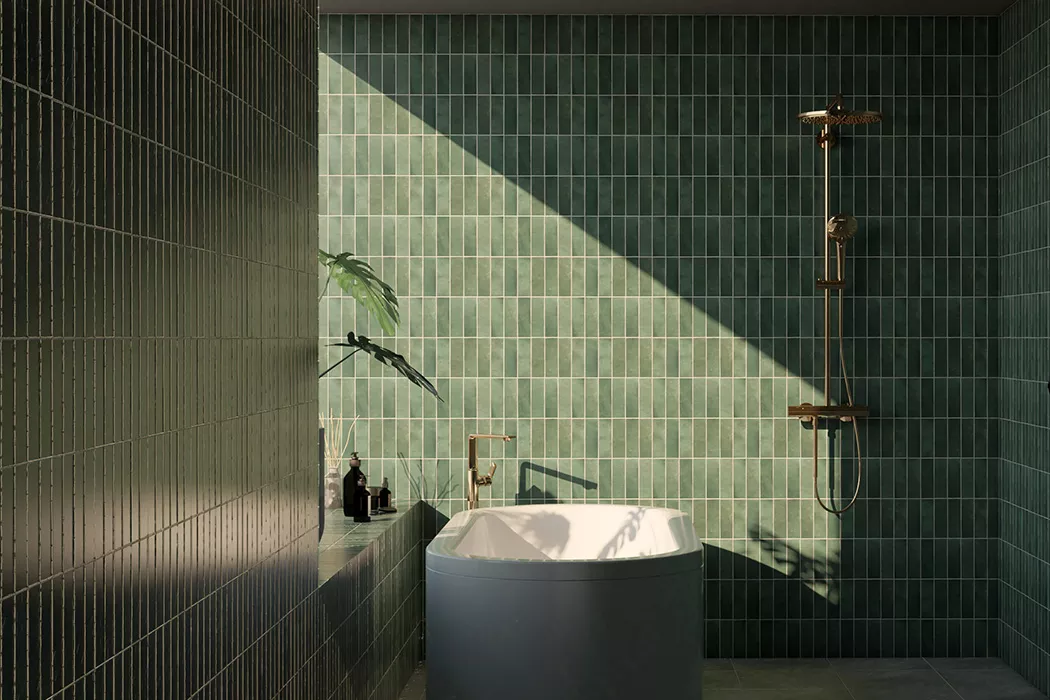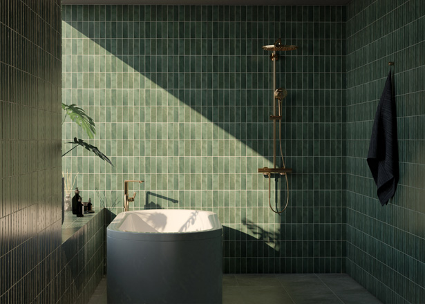 川上今回は、ぼくの軽井沢の家のバス空間のリフォームを、aq.のバスアーキテクトにシミュレーションしてもらいました。最初にその相談をしたのは、2022年8月の終わりごろ。ぼくの軽井沢の家は森の中にあり、朝、昼、夕方と、木立を通してそれぞれ違う印象の光が入るので、Pinterestなどで見つけたグリーンのタイルを使いたいという要望も交えつつ、自然光を採り入れた居心地のいい空間をつくりたいとお伝えしたところから始まりました。