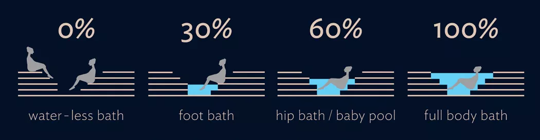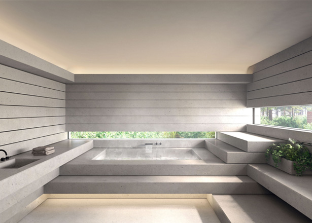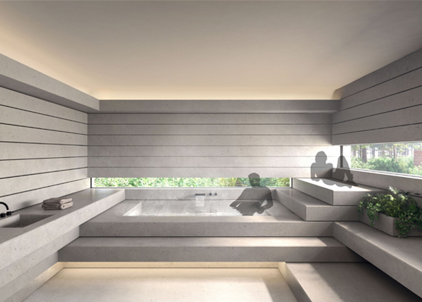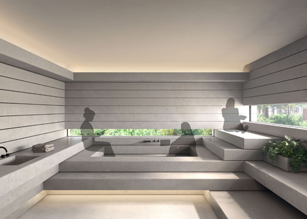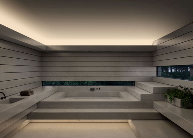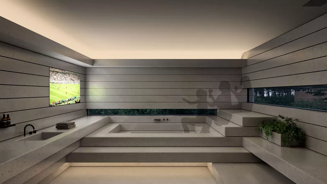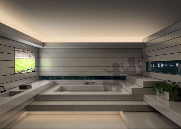 ちなみに、建築家はホテルやリゾートが高級なほど、疲れが溜まるんですよ。一人で行ってあちこち徘徊しながら実測せずにいられない、傍目にはまったくおかしな客です。とはいえ、過ごし方は自由ですから。 私も落ち着かないなりに、プールサイドで考え事をしたり、いつの間にか眠ってしまったり、しばらくするとまた頭を冷やすために泳いでみたり。そういうあらゆる行為を一つの空間に閉じ込めたのが、THE CONTOUR BATHです。水位は足湯から半身浴、全身浴まで気分に合わせて。使い方によってはリビングになり、仕事場にもなり、ベッドも作れます。等高線の壁は、棚やシアタースクリーンなどを装着できるアタッチメント機能を備えていて、ソープディッシュやシャンプーなどのアメニティはもちろん、グリーンコーナーやアートスペースも。夫婦や家族、仲間たちが思い思いに楽しめて、そこに親密なコミュニケーションが生まれる。リラクゼーションのループは、水がなくても成立します。未知の可能性を浮かび上がらせるためのWATER-LESSなんです。
